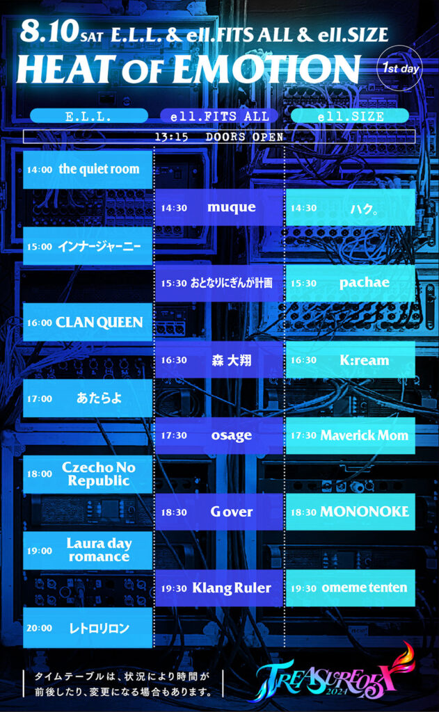 club vijon / hillsパン工場 / SUNHALL / FANJ twice / DROP / VARON / BEYOND / AtlantiQs / ANIMA / Pangea / BRONZE / CLAPPER / BIGCAT / CONPASS / OSAKA MUSE / FootRock&BEERS / OSAKA RUIDO / JANUS / soma / FANJ / なんばHatch(12日のみ)