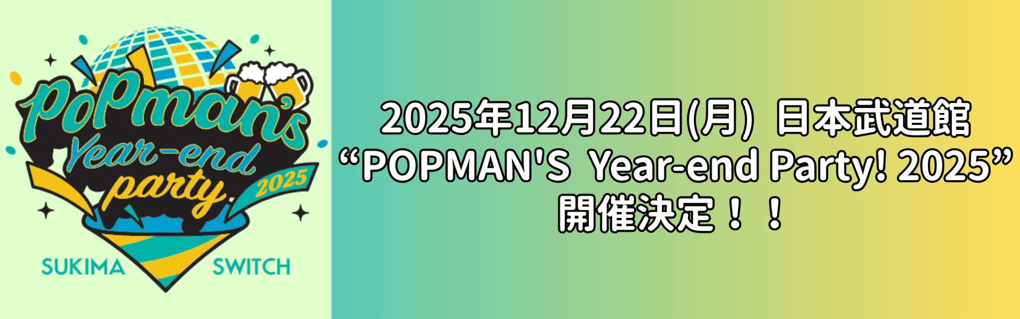 2025年の締めくくりに家族や友人を誘って、スキマスイッチと一緒に“Year-end Party”で盛り上がりましょう!!