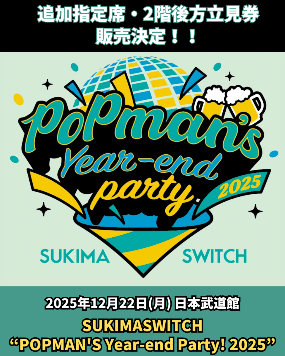 2月22日(月)開催『スキマスイッチ “POPMAN'S Year-end Party! 2025”』の追加指定席・2階後方立見券の販売が決定!
