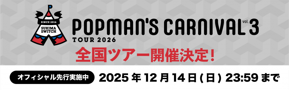 ヒット曲、定番曲はもちろん、あまりライブで演奏されなかったレアな曲など、これまでのキャリアの中から幅広くセレクトされた楽曲を存分にアレンジしながら披露していく“POPMAN’S CARNIVAL”の3度目の全国ツアーが決定!!