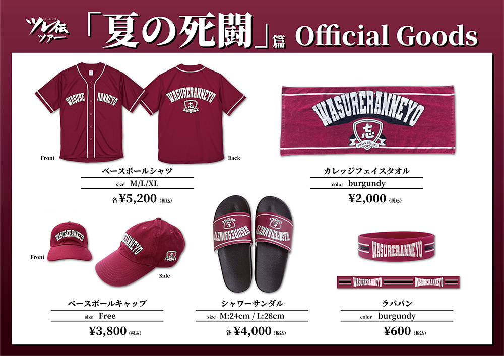 今までの忘れグッズではなかったカレッジ風のかわかっこいいデザインと夏にぴったりなラインナップ。ぜひ各会場のグッズ売り場にお立ち寄りください!