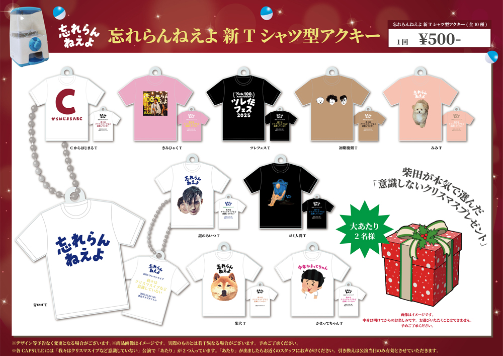 ※忘れらんねえよTシャツ型アクキー(全10種) にはワンマンライブ 「我々はクリスマスイブなど意識していない」公演で「アタリ」が入っています。「アタリ」の引き換えは公演当日のみ有効とさせていただきます。